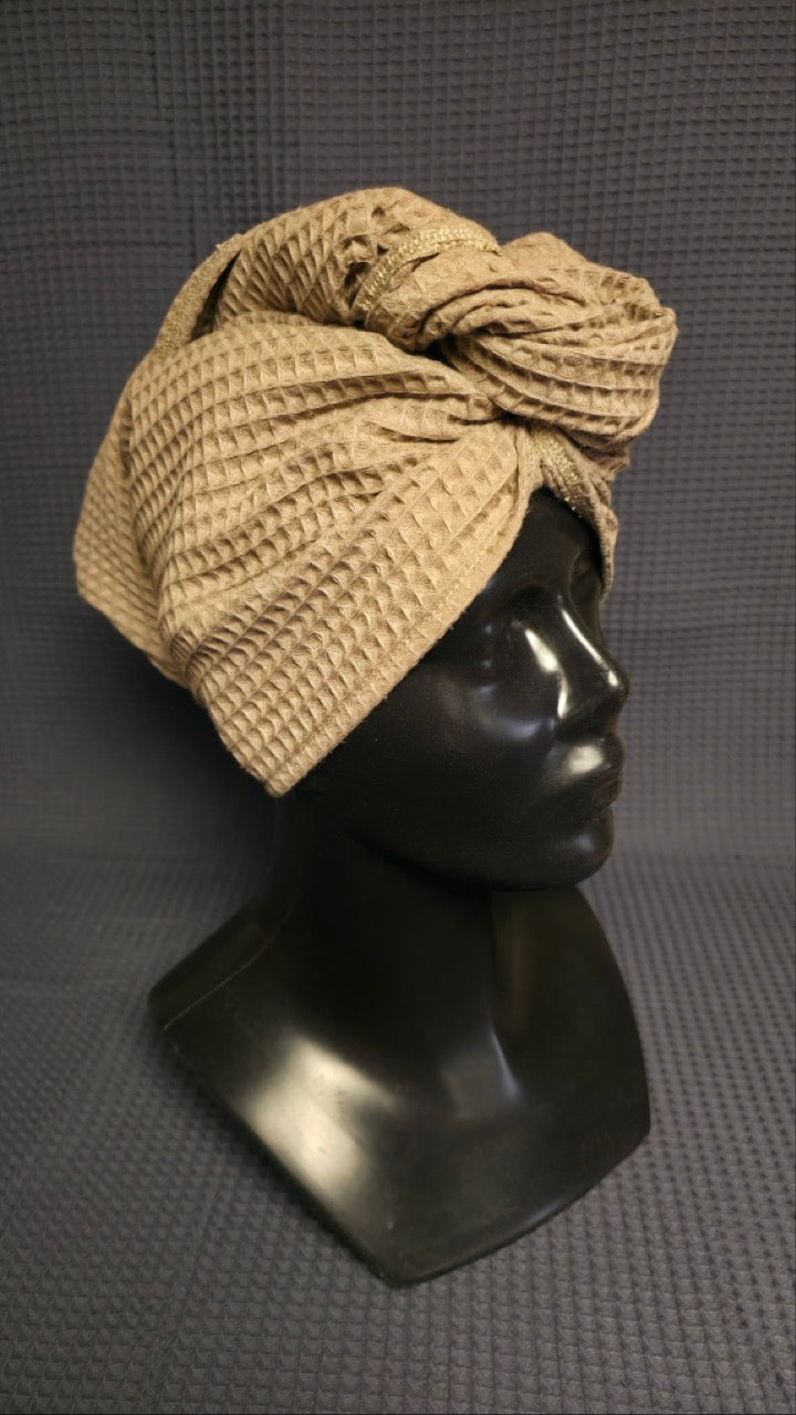 Matu dvielis Turbāns ar podziņu vafeļauduma / gaiši brūns