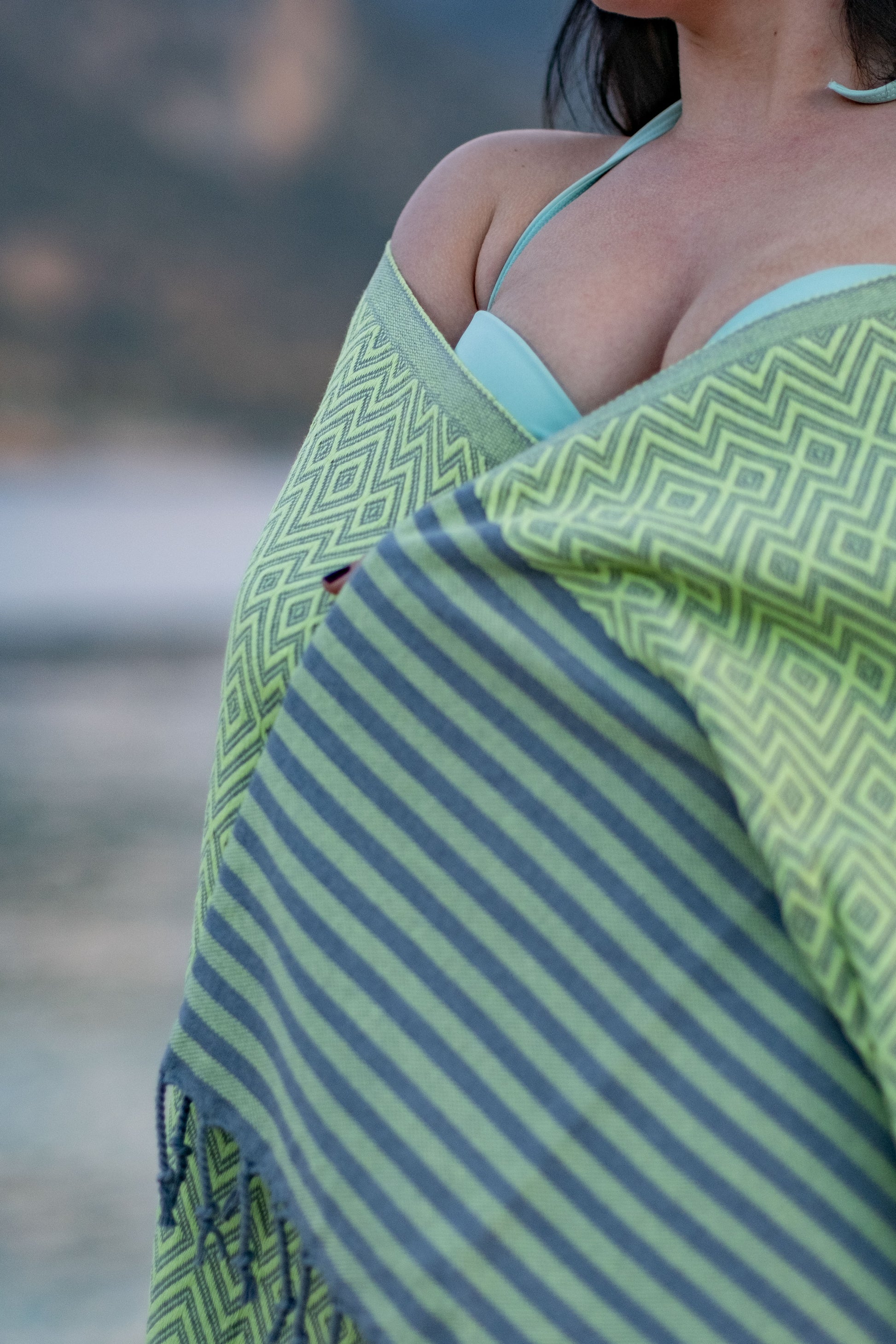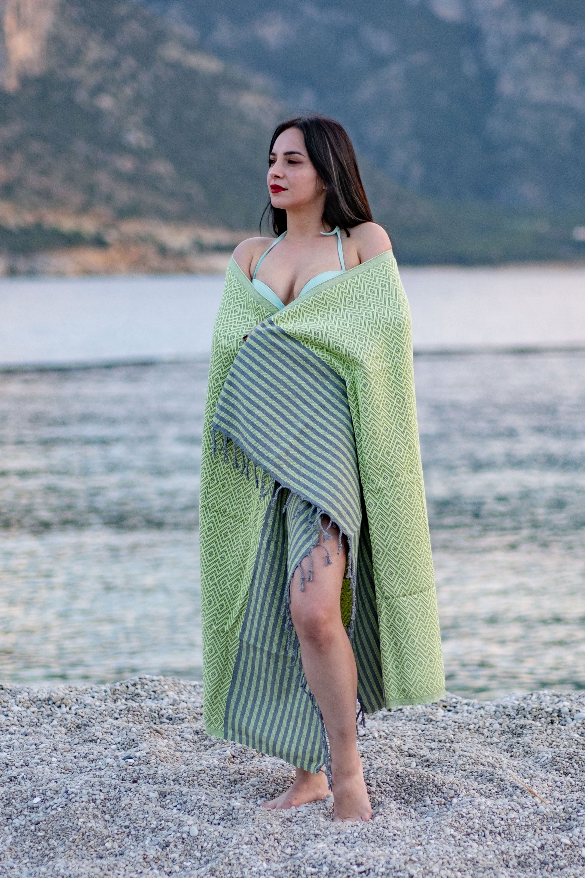 Pludmales dvielis Zaļš ar svītrām